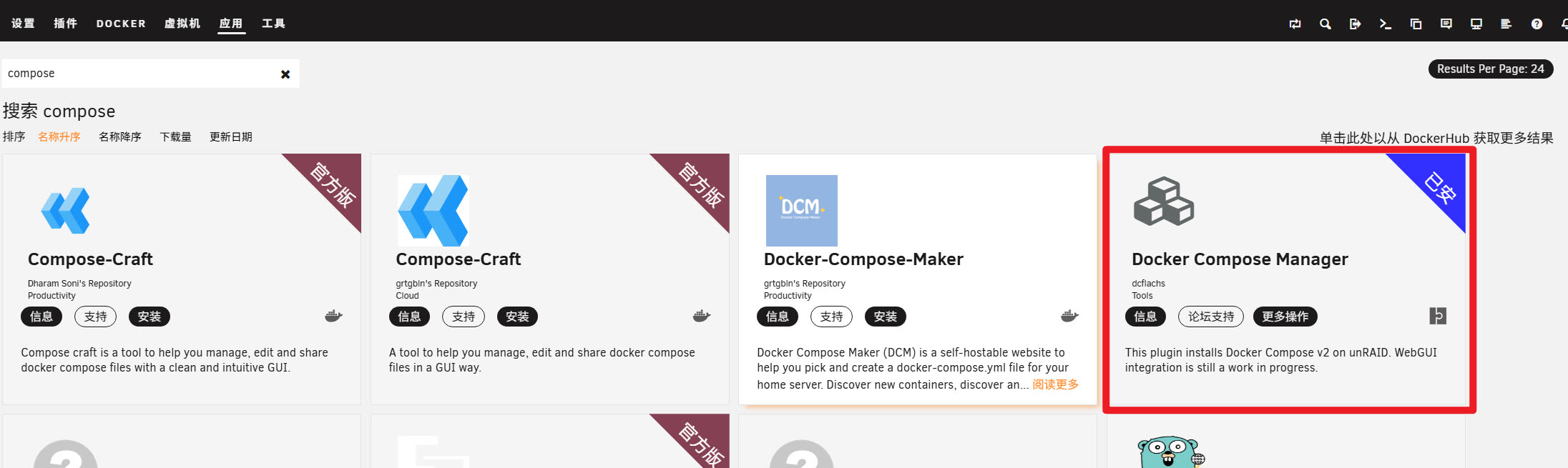实际上安装好了社区应用里的compose manager, 你也可以选择使用命令行来写docker-compose.yaml,并使用docker-compose up 来部署容器, 但是我这里选择使用web-ui的图形界面操作了
